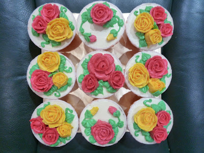 last time fatin penah order n die mintakkan buat bunga ros.. tp ms tuh aku blum la pandai buat bunga ros from buttercream, n hanye tau buat pakai fondant jer.. disbbkan ms tuh die oder lambat, mmg x sempat.. tp kali ni, aku x mengecewakan fatin lagi~~ huhu.. poyo jer! sonok sgt buat bunga ros ni, sbb senang n cepat, n of coz, cantek~~ x caye?? tgk sdiri ler..